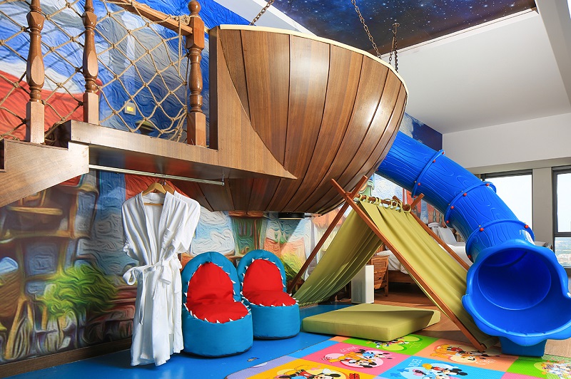 石狮球王会体育在线睿选酒店,地理位置得天独厚,位于球王会体育在线摩天城内,离石狮冒险王主题乐园咫尺之遥,它的坐标定义了它包容万象,既可以满足商务人士的商旅需求,又提供了全方位的亲子度假空间。作为睿选品牌,酒店在设计上沿袭了睿选的灵感定位和创意设计风格,去除繁复,给人以临海城市的清新自然之感。以亲子房为特色,亲子房内有海盗船卡通设计,房间的布置也是根据主题乐园动画设计,引领亲子度假酒店新风尚。