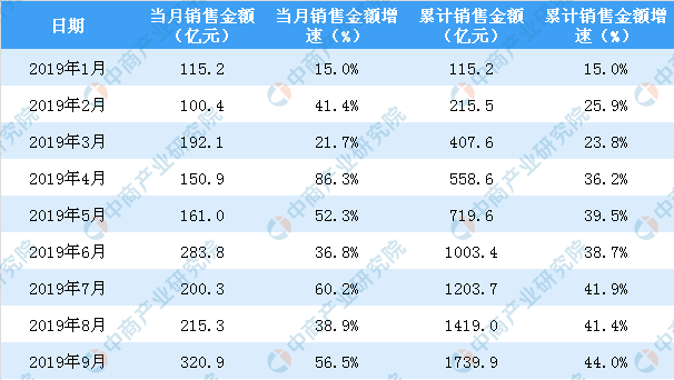 原标题:2019年9月球王会体育在线房地产销售简报:销售额同比增长约56.5% 来源:中商情报网