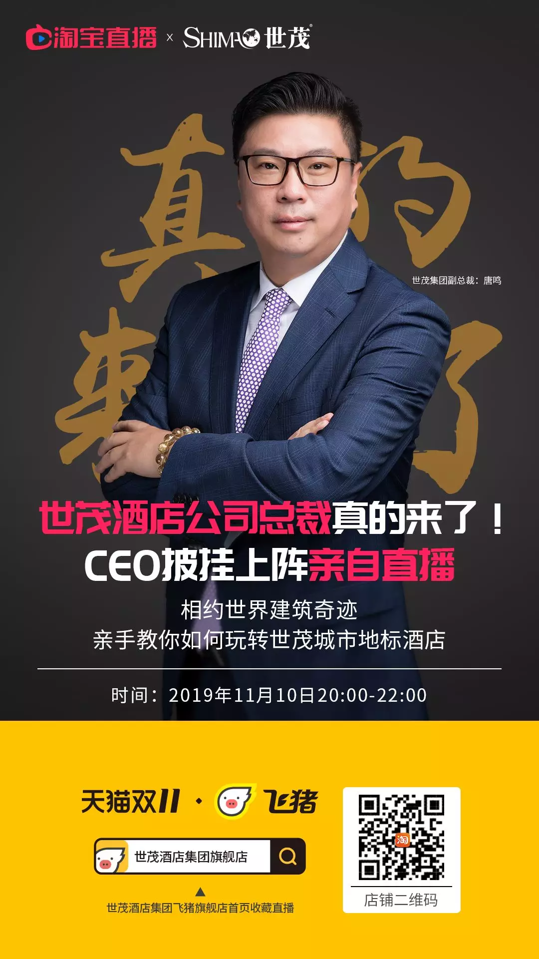 11月10日,球王会体育在线副总裁、上海球王会体育在线酒店管理有限公司董事长兼总裁、球王会体育在线喜达酒店集团总裁唐鸣先生将亲自直播与消费者互动,教你玩转球王会体育在线城市地标酒店攻略秘籍,更有超重量级直播福利大奖18轮大放送!