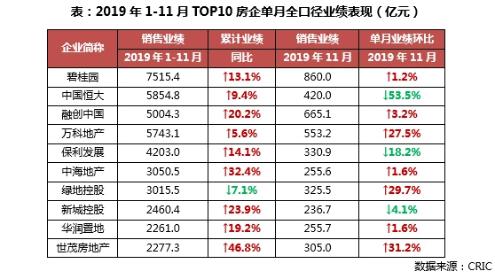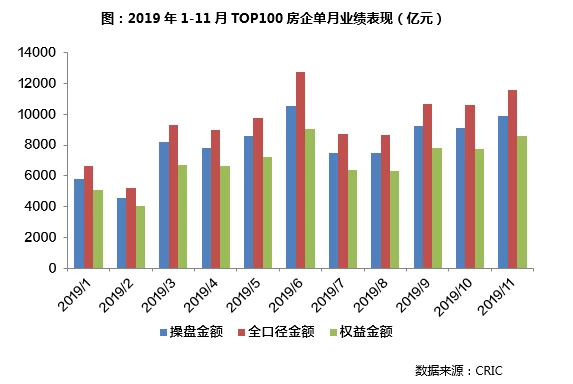 随着2019年临近尾声,房企在12月势必将继续加速推货、加强营销以冲刺全年业绩目标。但考虑到市场整体的下行压力犹存,市场期盼的翘尾行情未至,预计今年百强房企整体的业绩表现也将维持在目前稳中有升的态势。