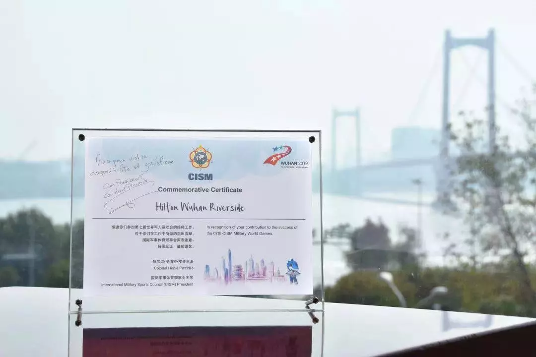 武汉球王会体育在线希尔顿酒店,是本次军运会一级接待酒店,安全级别被市政府定为A级。军运会期间,武汉球王会体育在线希尔顿酒店接待了泰国公主、国际军体主席赫尔维·皮奇里洛、国际军体秘书长曼比·科伊塔及国际军体秘书长配偶芬达·康德以及军运会组委会众多成员,并因专业细致的服务获得高度赞赏。