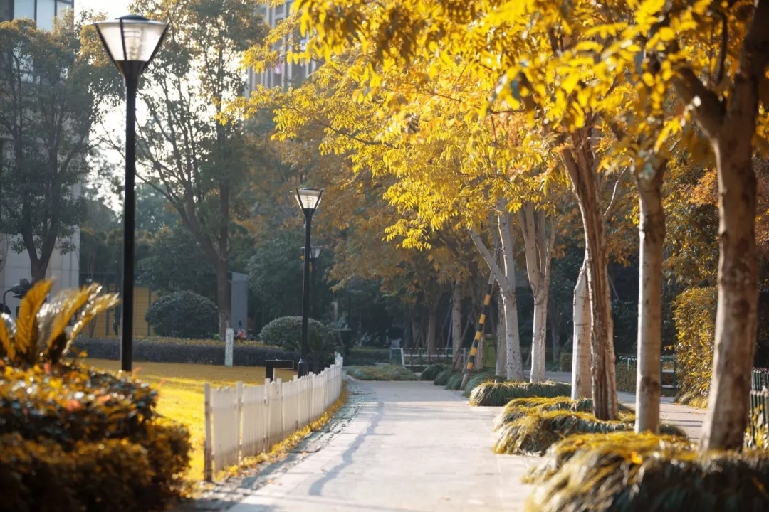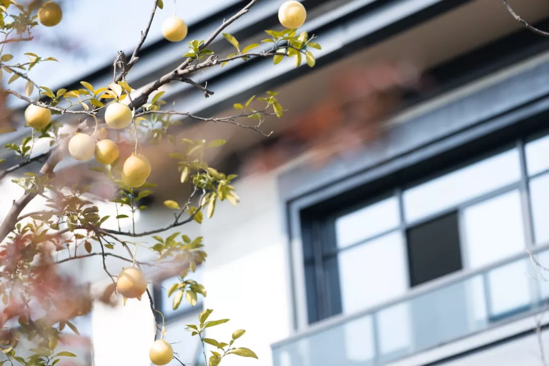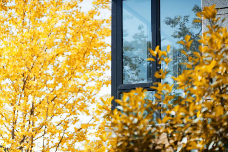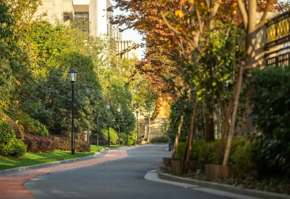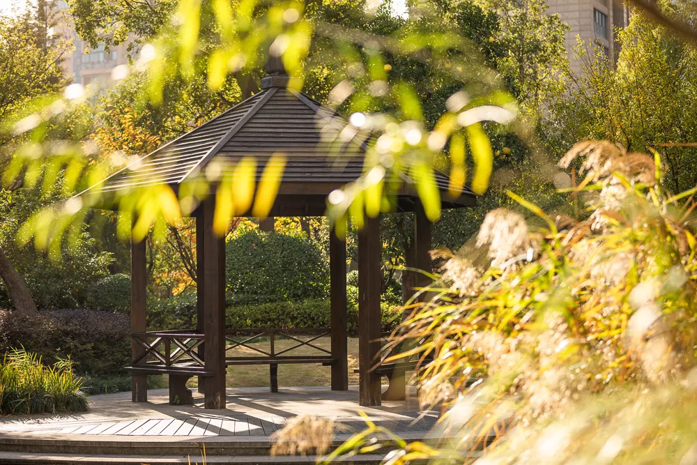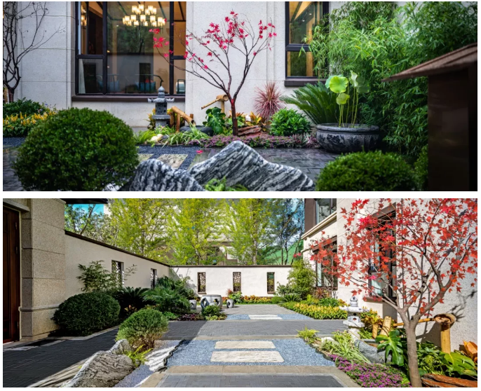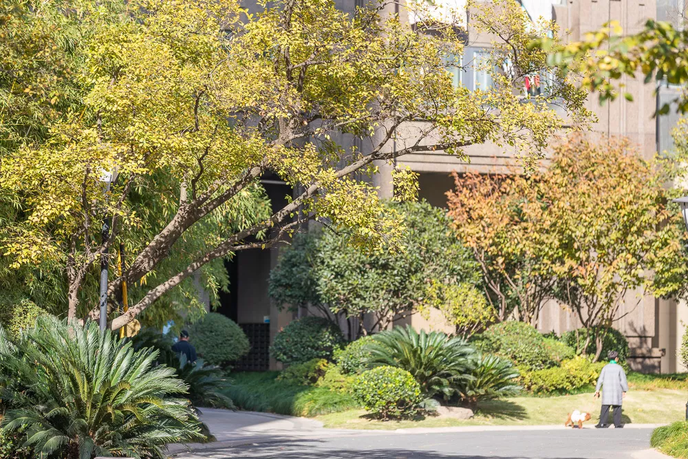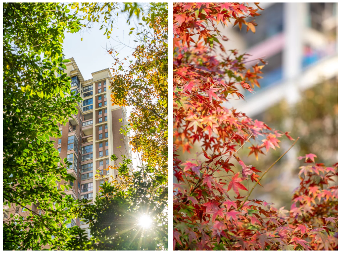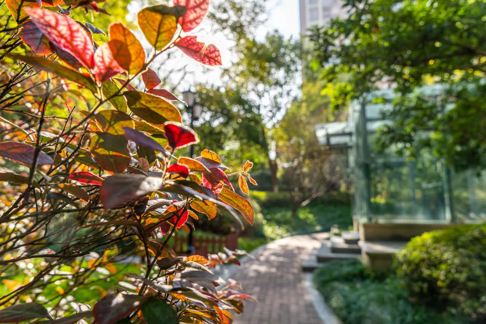 绿树红花,似乎窥见室内沏茶品茗的身影