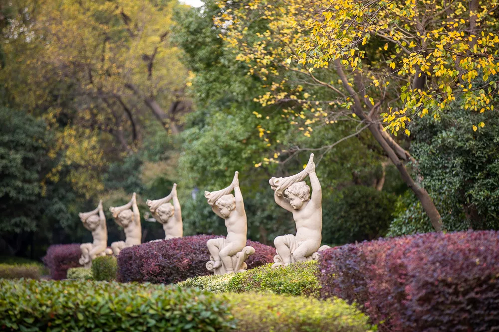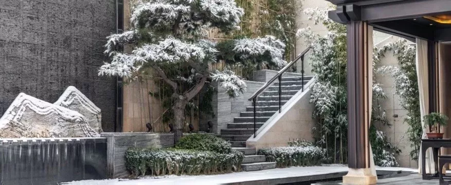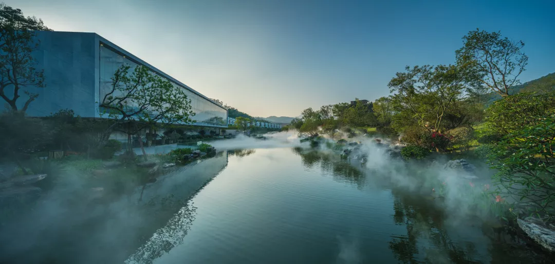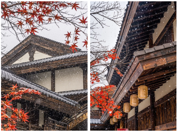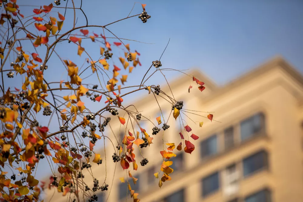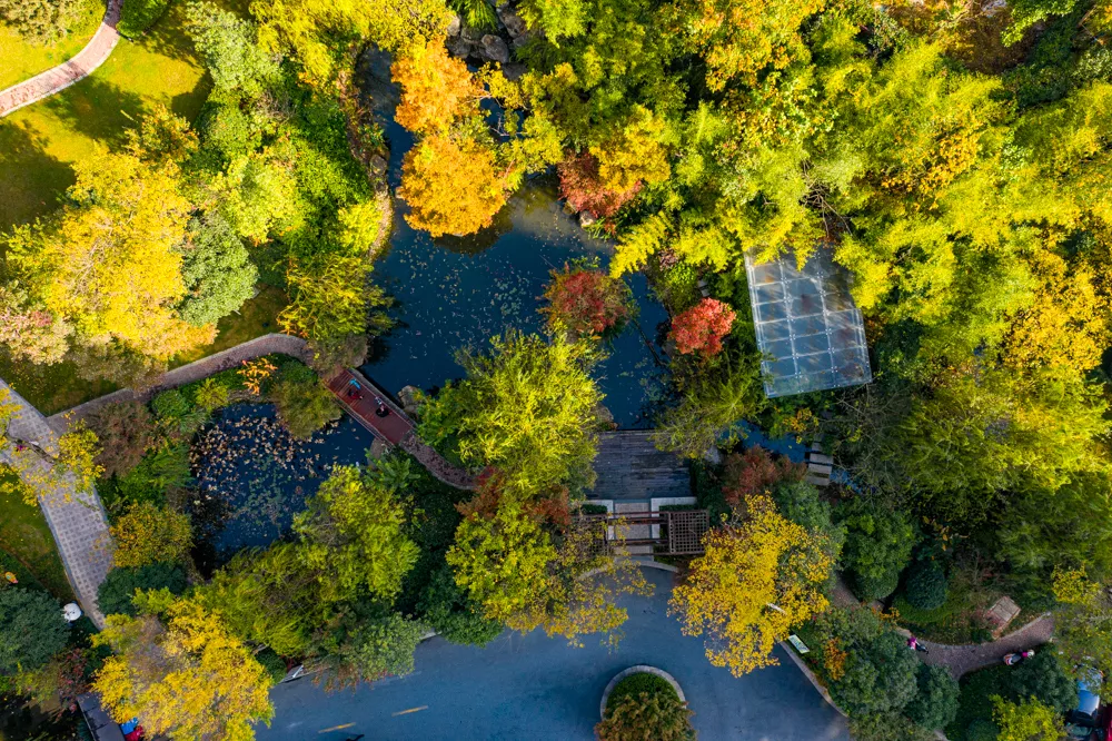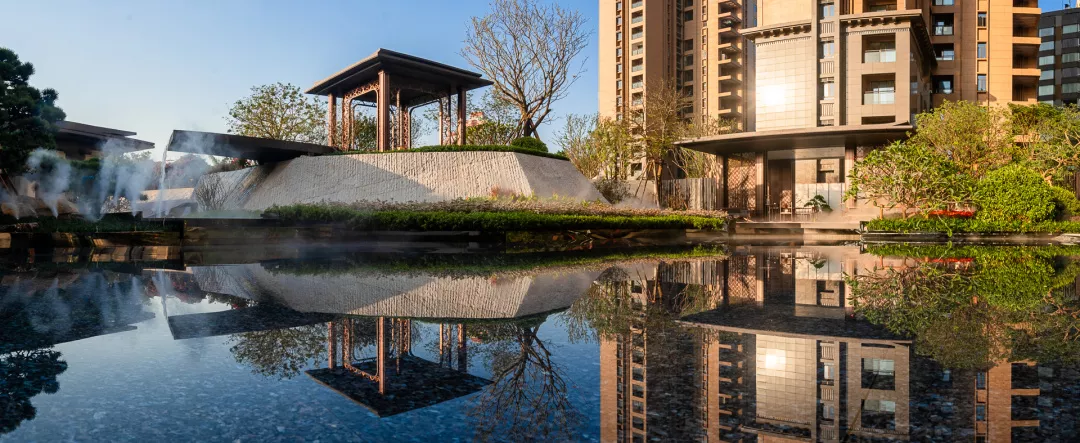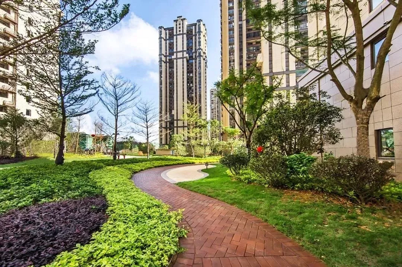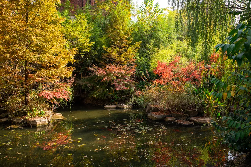 绿树红花,似乎窥见室内沏茶品茗的身影