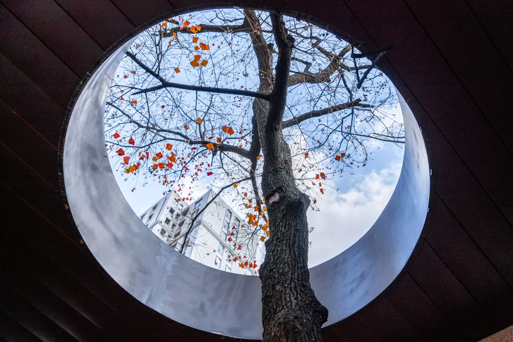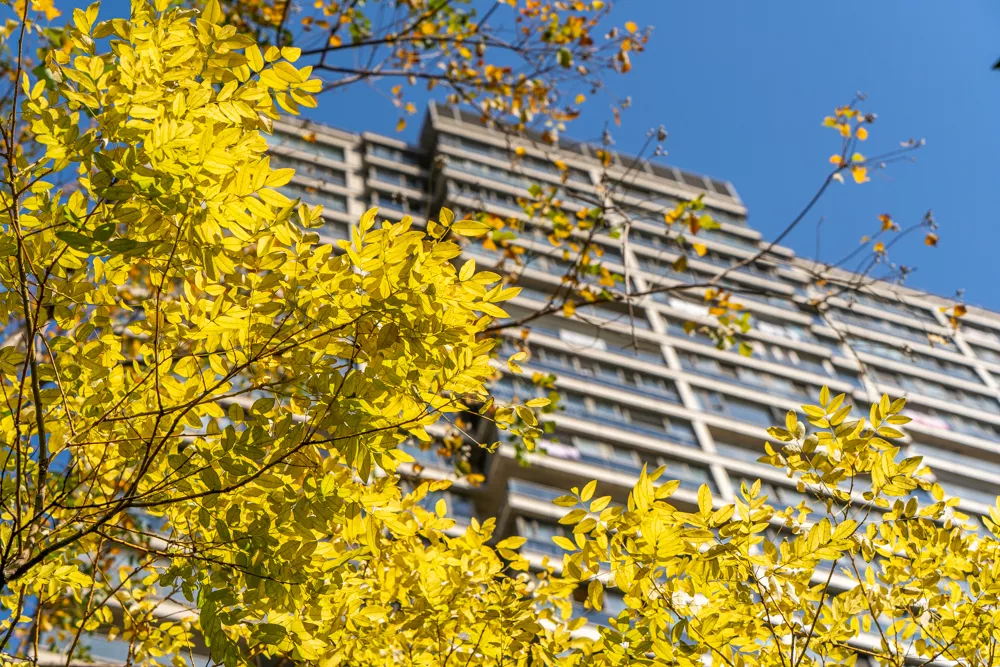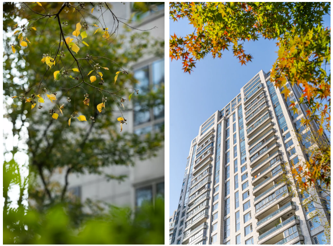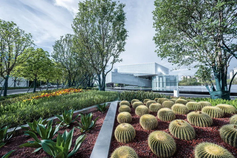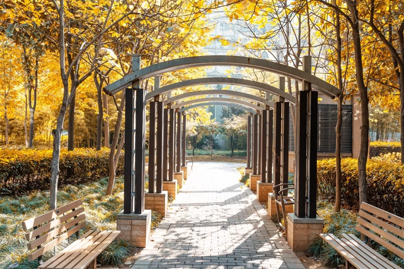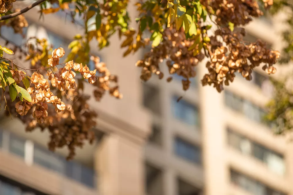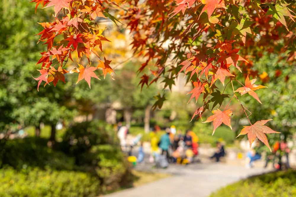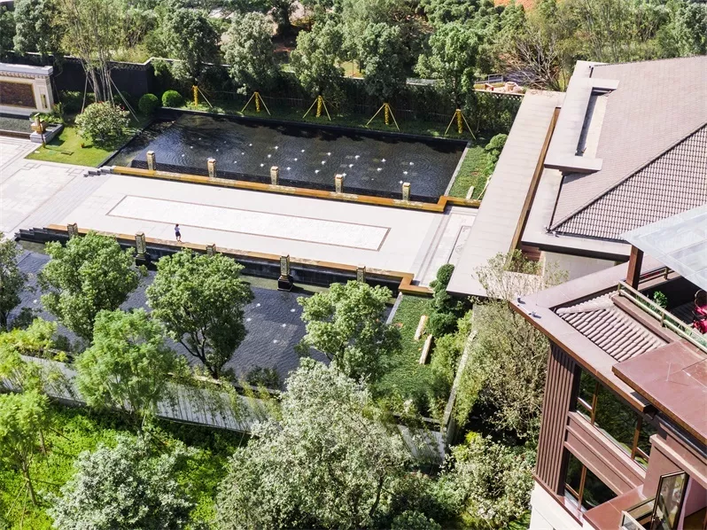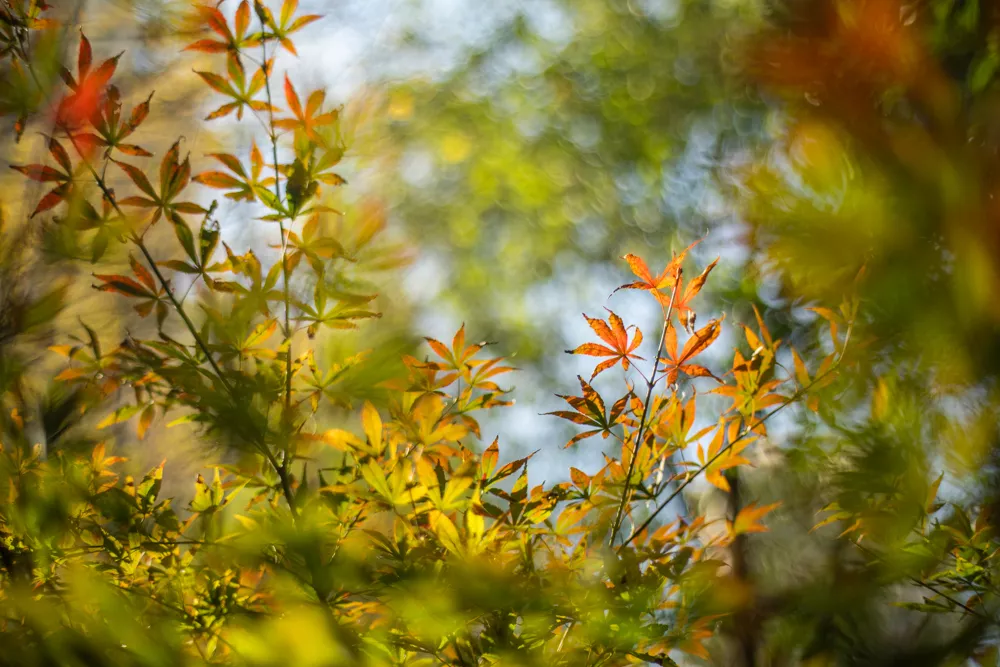 绿树红花,似乎窥见室内沏茶品茗的身影