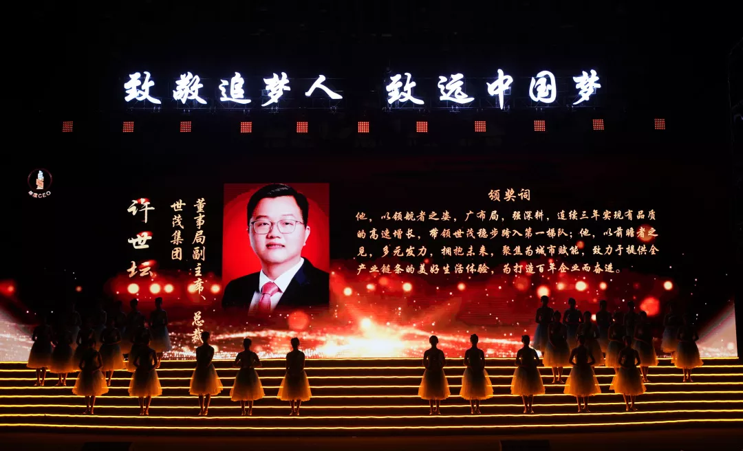 大会给许世坛的颁奖词这样写道:他,以领航者之姿,广布局,强深耕,连续三年实现有品质的高速增长,稳步跨入第一梯队;他,以前瞻者之见,多元发力,拥抱未来,聚焦为城市赋能,致力于提供全产业链条的美好生活体验,为打造百年企业而奋进。
