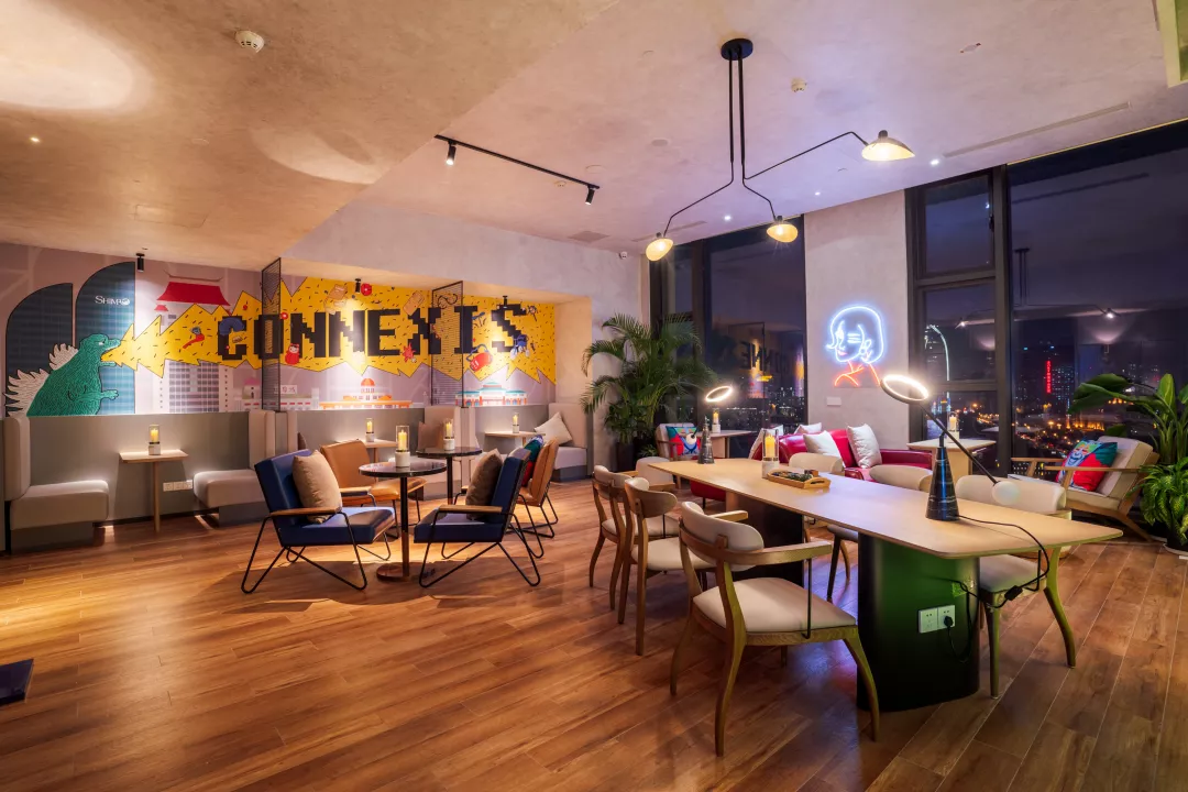 酒店富有社交属性的共享办公空间Connexis及互动公共空间,融合本地邻间文化与社群文化,以极具目的地文化体验的住宿环境,让宾客在交流互动中彼此连接,碰撞火花。社交大堂还将定期举行座谈分享、宵夜团、夜跑等社交活动,鼓励宾客在入住期间深入当地、探索城市魅力。