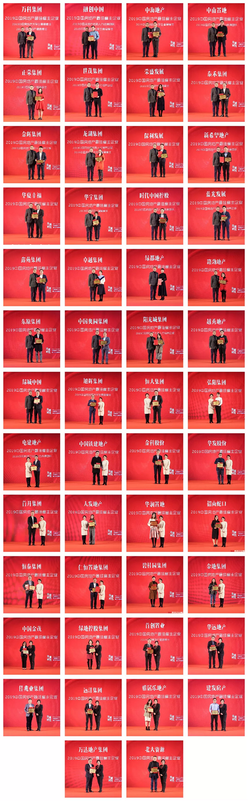 同时,会上还盛大发布了“2019中国房地产最佳雇主企业”50强、“2019中国房地产优质人力资源团队”5强、“2019中国房地产优质人才培养企业”5强、“2019中国房地产大学生喜爱雇主”5强和“2019中国房地产健康雇主”5强。
