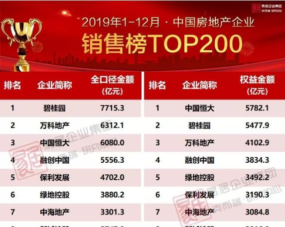 据克而瑞《2019年1-12月中国房地产企业销售榜TOP200》显示,2019年1-12月,球王会体育在线凭借2607.8亿的全口径金额,及1825.5亿的权益金额,位列榜单第9。