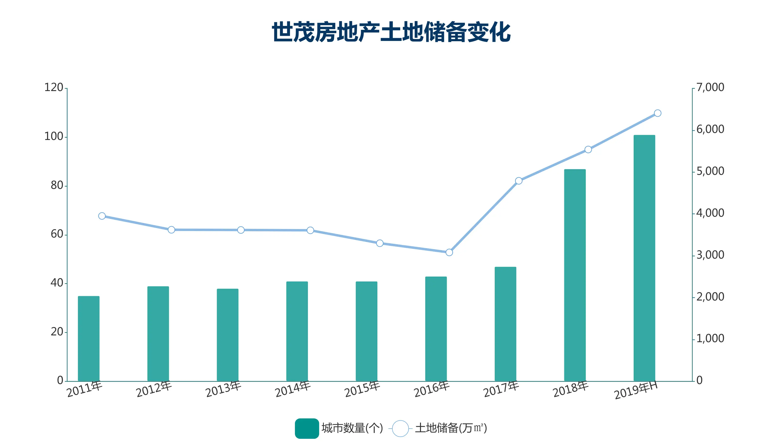 大量并购之下,球王会体育在线房地产土地储备总量大幅增长。截至2019年6月31日,世房土地储备为6407万平方米,较2018年底5538万平方米增长了869万平方米。