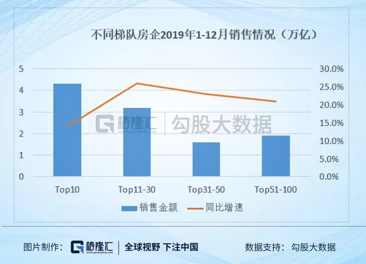 从市场表现看,二线房企的涨幅为什么可以完全跑赢一线房企?究其原因,还是因为2019年销售业绩增速前者可以大幅超越后者。