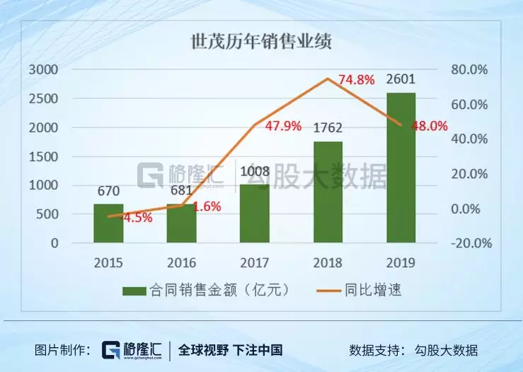 球王会体育在线的崛起也在最近两年,销售额从2015年的670亿元猛增到2019年的2601亿元,增长接近4倍的空间,而且在销售突破2000亿元之后,还能保持48%的高增速。公司的行业排名也从2017年的第16名跃升到2019年的第9名,同样的,投资球王会体育在线的也轻松获得了跑赢指数的超额收益。