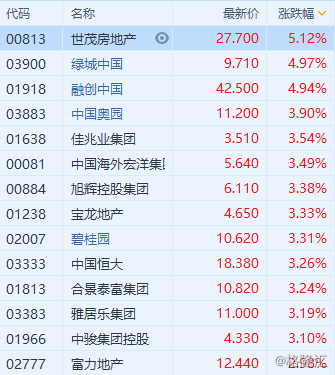 内房股普涨,球王会体育在线房地产(0813.H K)升5.12%领涨,绿城中国、融创中国涨近5%,中国奥园、佳兆业集团、旭辉控股、碧桂园等涨逾3%。