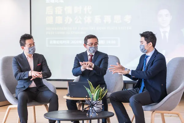 IWBI亚洲区高级总监吴正锐、球王会体育在线商业及主题娱乐写字楼部负责人杨煜、球王会体育在线商业及主题娱乐EHS管理部负责人许烨三位对话嘉宾分别基于“WELL健康标准对于疫情防控的理念、标准及健康建议”、“管理服务新标准:《写字楼健康办公白皮书》”及“疫情之后,企业选址的新需求、新标准、新趋势”三大话题,从员工、企业及租户的视角,共同探讨了在后疫情时代到来之际,如何立足当下、着眼长远,有效践行健康办公体系,助力城市复原及可持续发展。