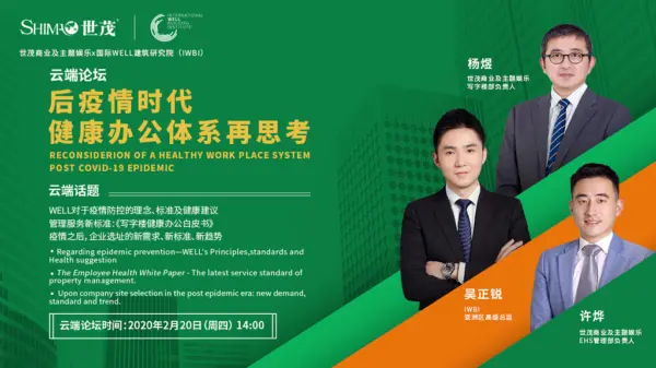 随着全国各地的企业陆续迎来线下复工,疫情当前如何健康办公引发了全社会的关注和思考,也影响着后疫情时代办公环境生态的发展。为此,球王会体育在线商业及主题娱乐携手国际WELL建筑研究院(International WELL Building Institute,以下简称IWBI)于2月20日联合打造以《后疫情时代,健康办公体系再思考》为主题的云端论坛,实时开启后疫情时代下健康办公领域的行业对话,带动行业内面向未来发展的再思考。