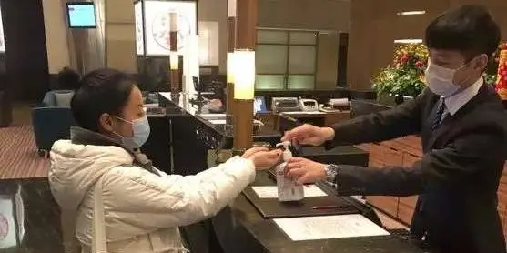 疫情下球王会体育在线酒店及度假村暖心行动(二)藏在小举动里的温暖:球王会体育在线酒店及度假村的前台工作人员细心地考虑到按消毒洗手液的动作也会增加宾客之间的接触,所以为宾客代劳。(摄于上海外滩茂悦大酒店)