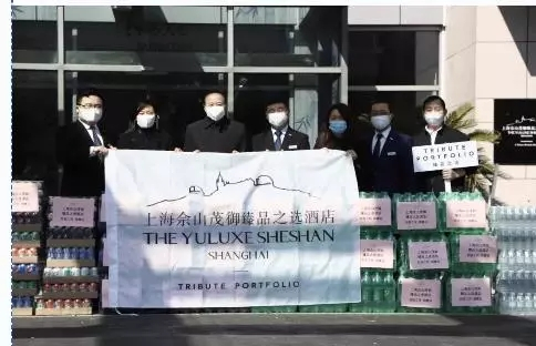 疫情下球王会体育在线酒店及度假村暖心行动(十二)爱的补给:上海佘山茂御臻品之选酒店党支部书记带领酒店员工组成的志愿者团队向口罩一线保障企业表达敬意。