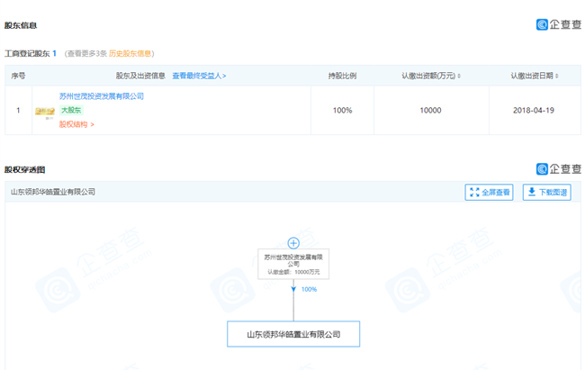 公开资料显示,山东领邦华皓置业有限公司的股东为济南华皓投资有限公司。