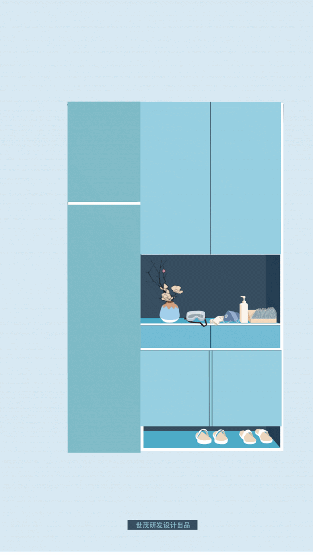 特殊时期,玄关可以承担起“清洁小仓库”的角色,专门用来放置消毒杀菌用品。口罩、一次性酒精棉片、消毒湿巾等可以就近放置,更多安全防护更多便利。