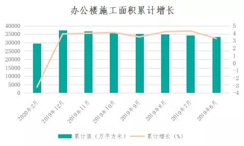在供应方面,受到新冠疫情影响,商办物业建筑企业无法正常复工,项目进度迟缓,商办物业施工面积减少。据国家统计局数据显示,1-2月全国办公楼施工面积累计值出现下降,累计增长为-3.2%,首次出现负数增长。