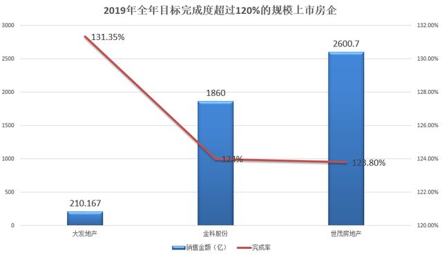 研究员发现,去年目标完成度120%及以上的仅有3家,分别为大发、金科和球王会体育在线。2020年,金科和球王会体育在线将分别冲击2000亿、3000亿阵营。