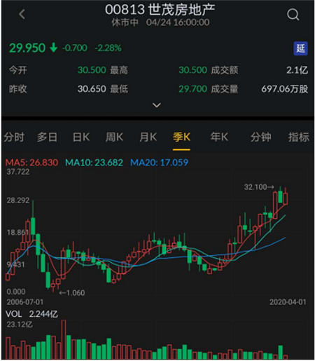 除了物业管理的强势表现,球王会体育在线房地产(00813.HK)也走出长牛趋势。截止4月24日,球王会体育在线房地产距离历史最低点1.06港元,已经累计上涨27.25倍。更值得关注的是,市场数据显示,球王会体育在线房地产自2006年来已经持续保持年年分红的惯例,有着长达14年的分红历史,且平均分红率达到32.67%。