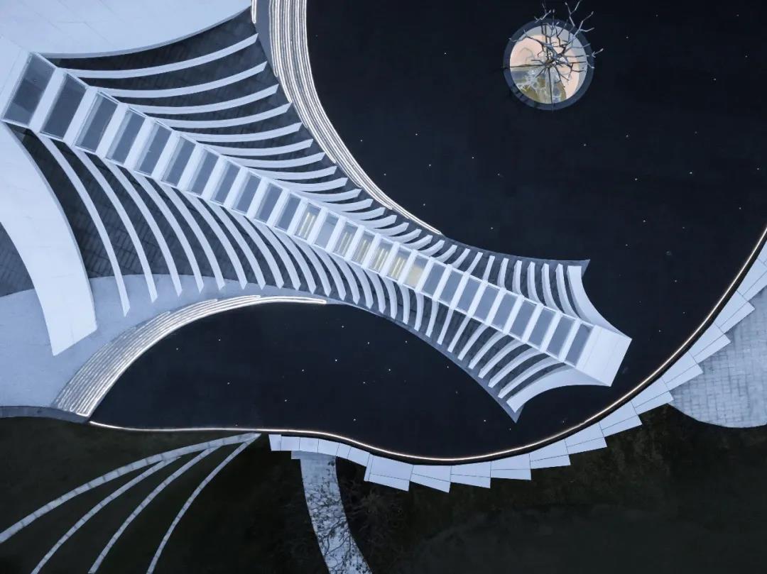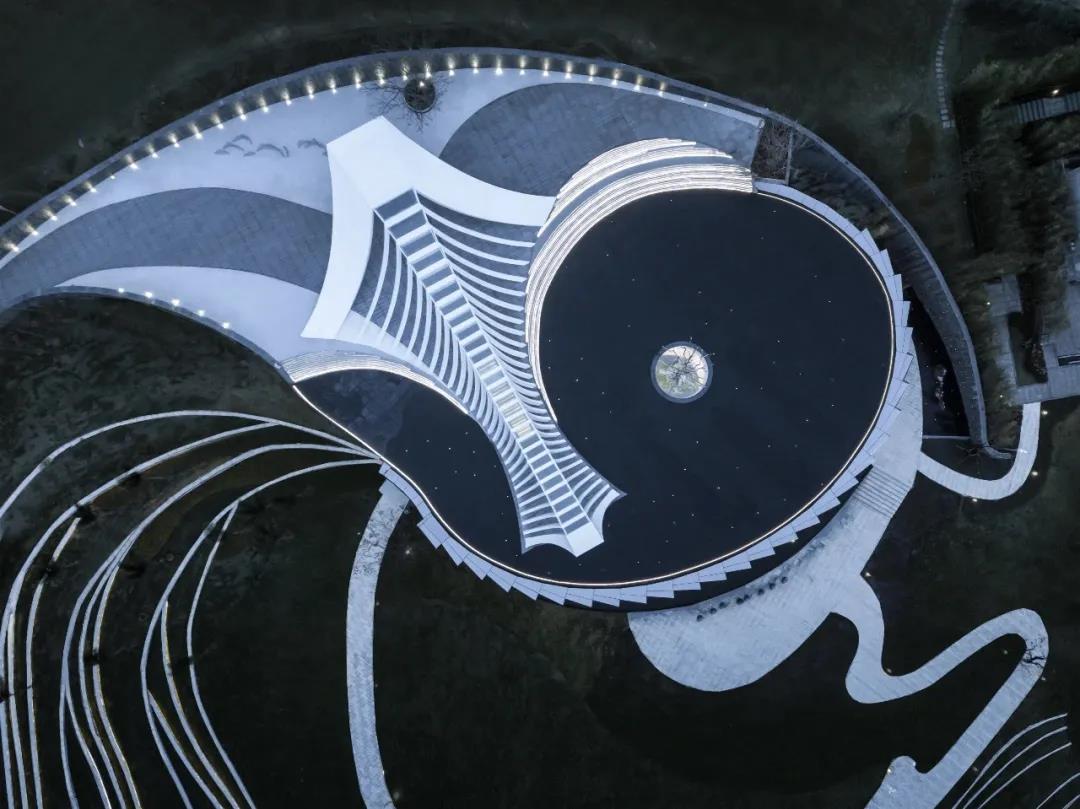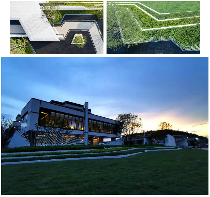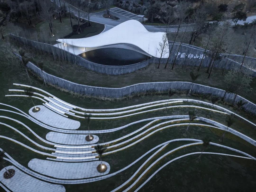 从空中俯瞰,沿山势铺就阶梯状的景观带