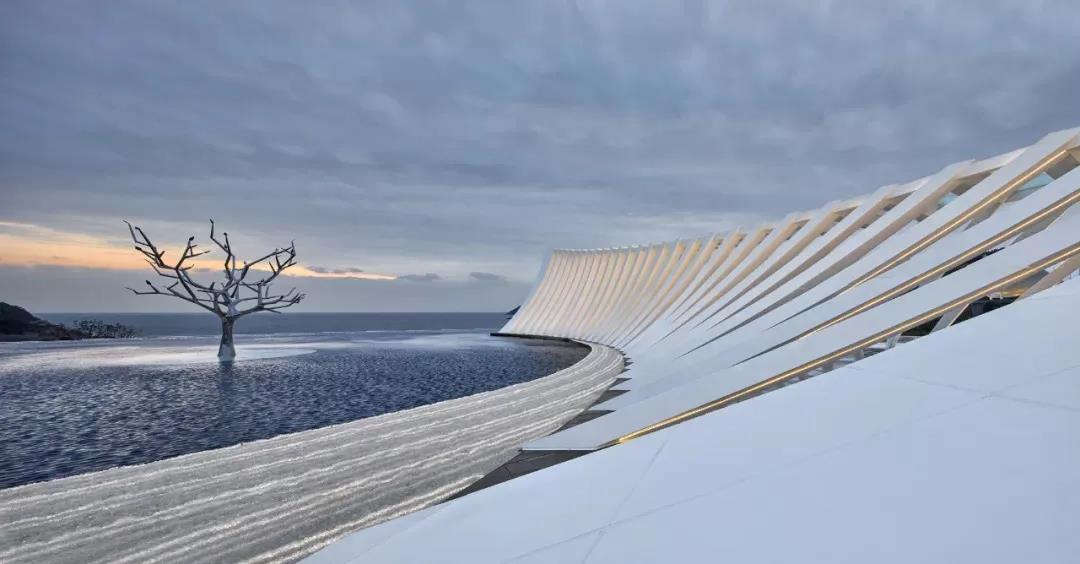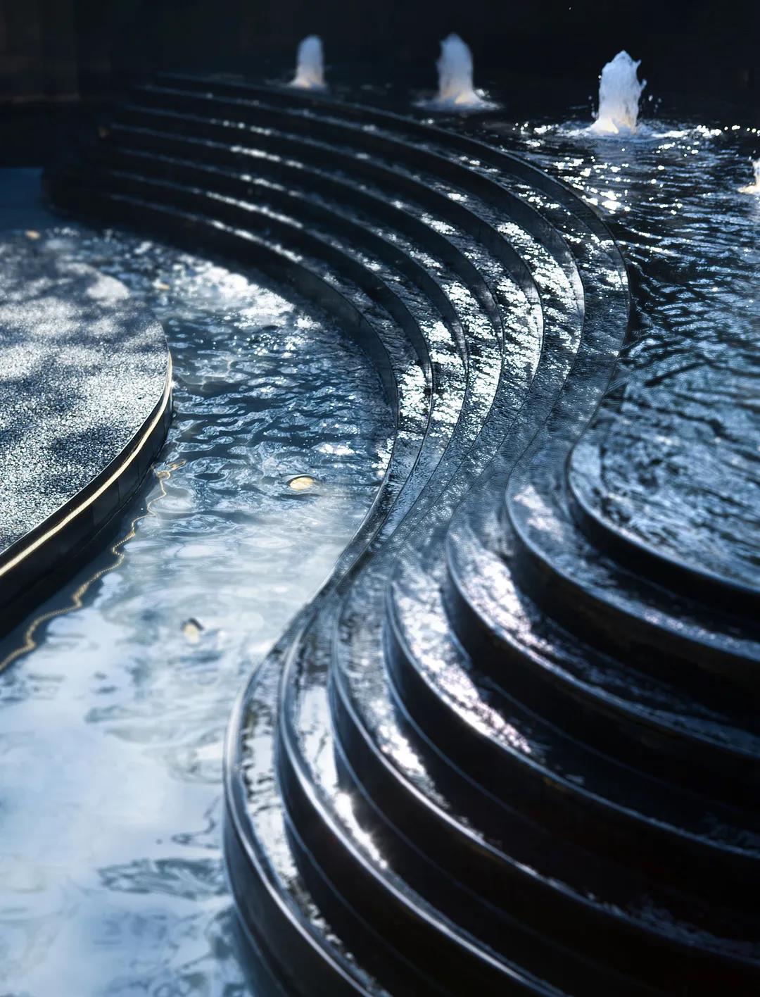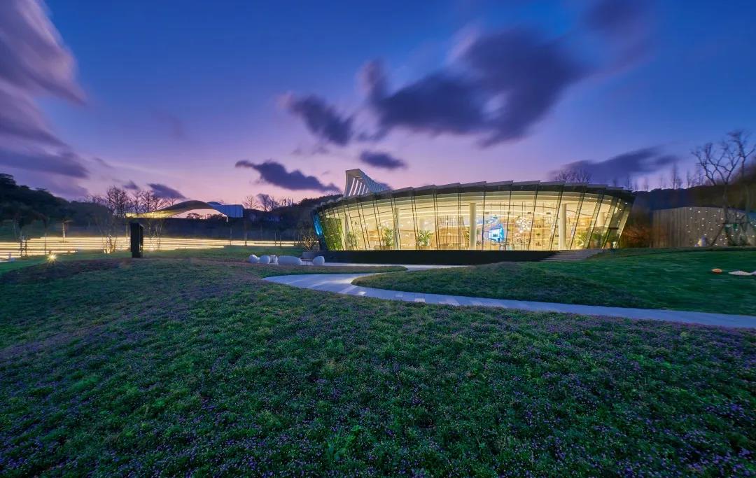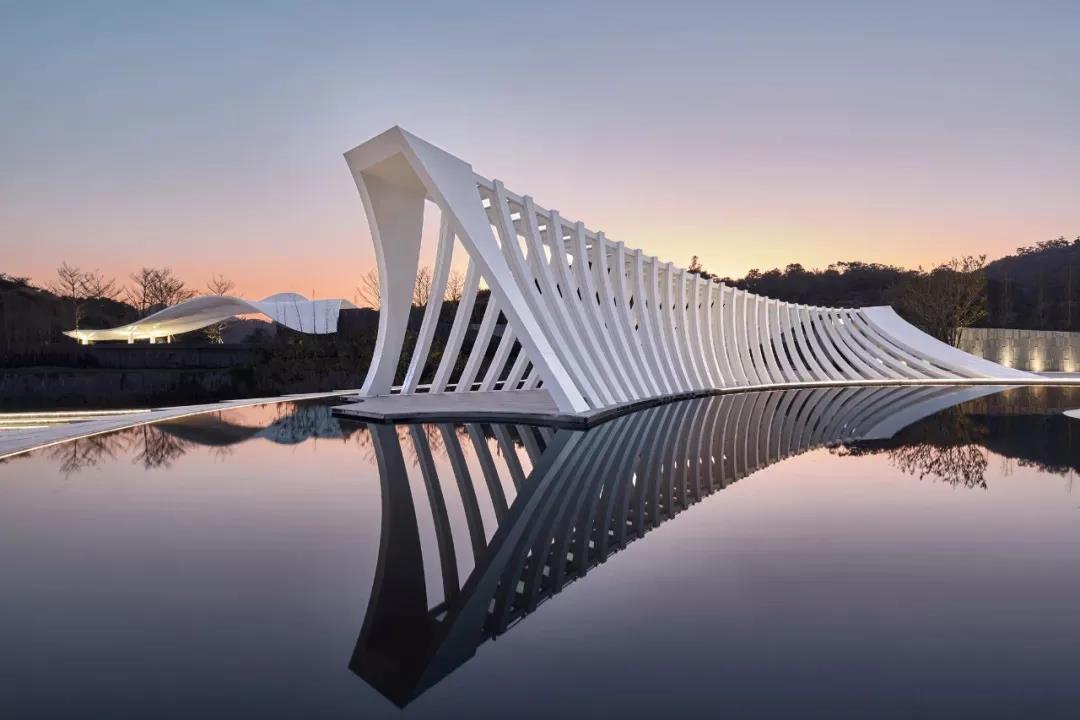 从空中俯瞰,沿山势铺就阶梯状的景观带