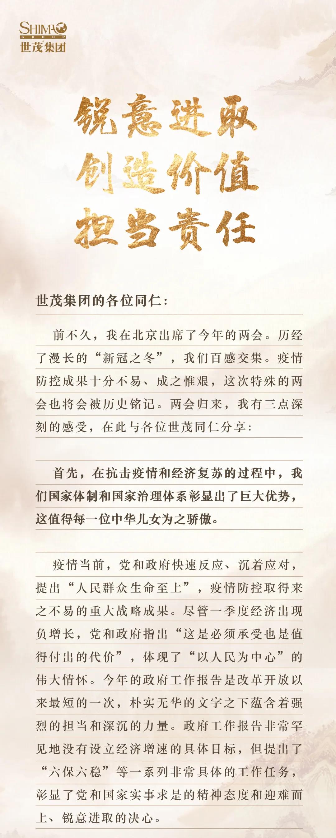 球王会体育在线董事局主席许荣茂向全体同仁传达两会精神