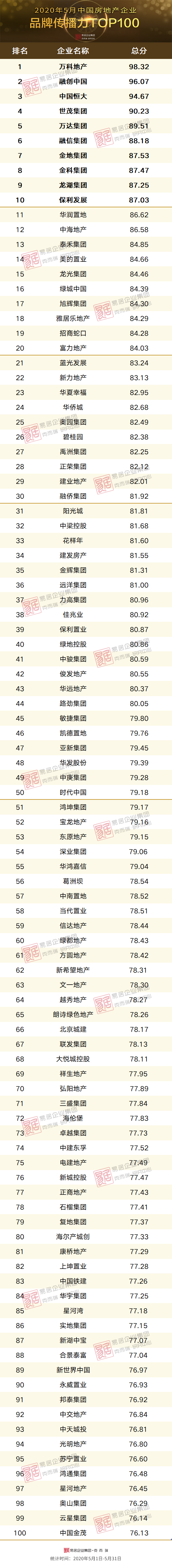 品牌传播力排名方面,5月,万科、融创、恒大位列前三,球王会体育在线、万达紧随其后。