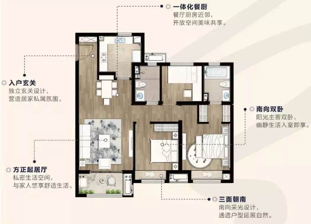 球王会体育在线云系深研紧凑型户型采光差、空间狭小等空间居住痛点,在传统户型基础上,将大面采光、入户玄关、舒适动线等布局巧思融入到紧凑型三房户型设计中,让生活因房子而更加美好。