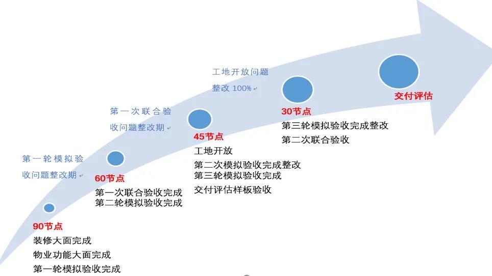 比如佛山万科精装交付前有模拟验收、联合验收、工地开放和交付评估四个环节。