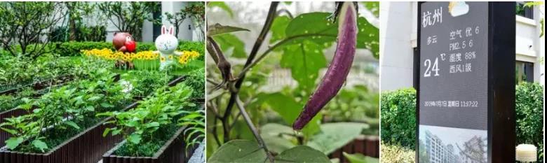 比如杭州远洋上塘宸章交房当天,小区里的一米菜园已经可以看到蔬菜郁郁葱葱。业主还被告知,未来一年都可以通过线上秒杀方式来领取小菜园进行耕种。在园林景观的主入口处,园区PM2.5实时监测屏也已经正式启用。