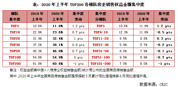 另一方面,从上半年的销售集中度来看,TOP50房企集中度与去年同期相比基本持平,而TOP51-100房企和TOP100之后房企的集中度分别同比下降0.7和1个百分点,权益金额集中度出现一定回落。