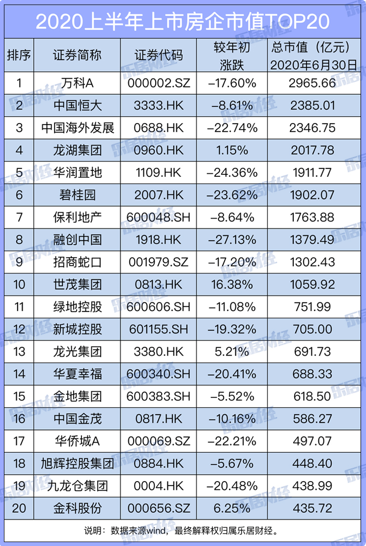 2020上半年,新冠疫情、大国摩擦升级等大环境的变量,让资本市场“胆战心惊”。截至昨日,2020上半年上市房企最新的市值排行榜已经产生。