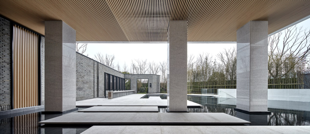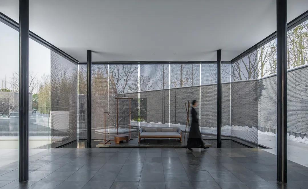 禅院、水院相连,曲径通幽,集结成可以被当代感知的空间。借取古典空间中的影壁、穿堂、天井、明堂等典型民居空间作为原型,剥离其表面繁杂的符号,在永恒的时空中留下纯粹的场所记忆。