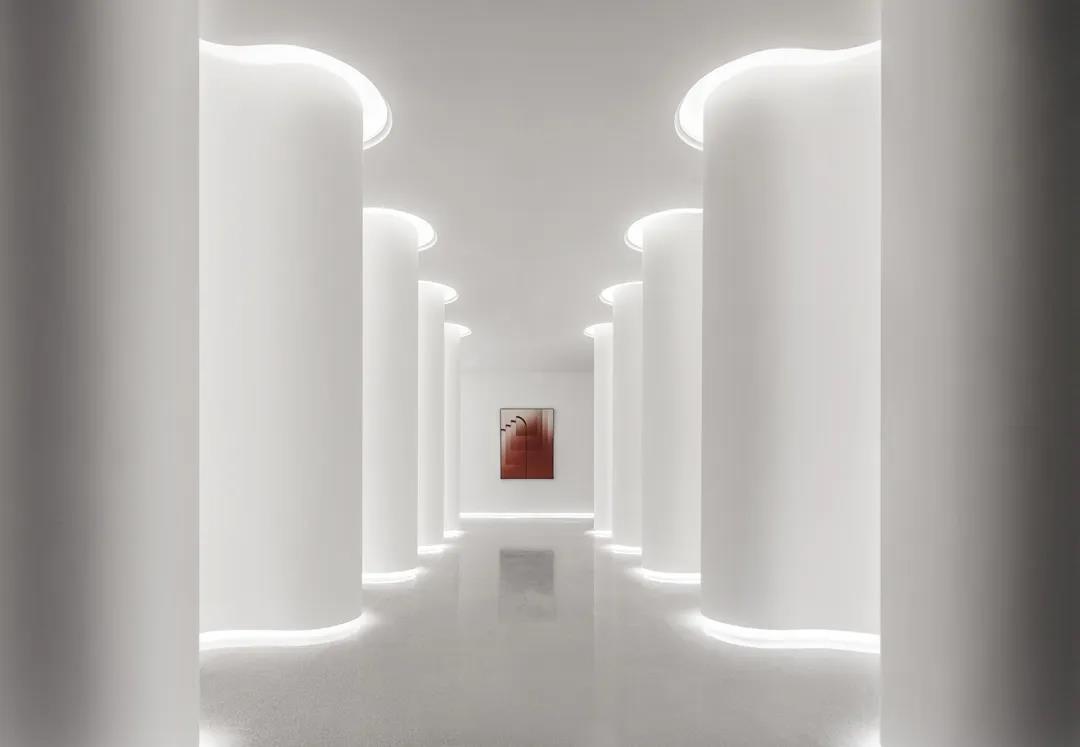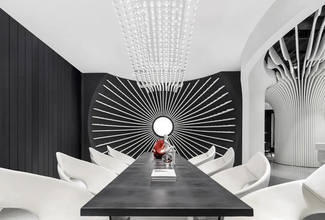 白是黑的光,黑是白的影,一个神秘,一个纯洁,将五彩缤纷的世界归为统一,藏了无数的故事艺术仪式感的空间给人带来思考的余地。沉浸感的视觉与空间体验,大胆配色的搭配,让整体氛围充满未来感。