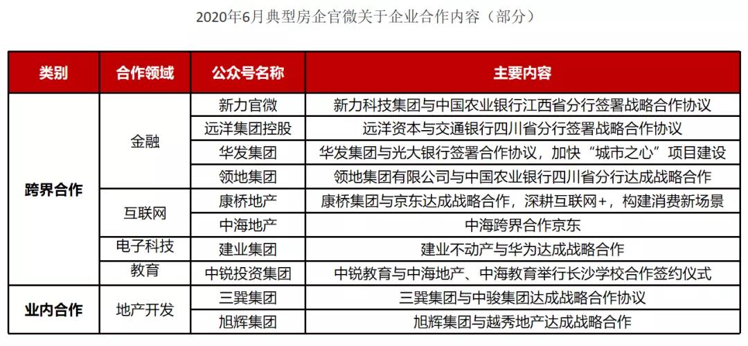 6月份,众多房企从多维度与其他企业达成合作,从跨界合作到业内共赢,企业以有利元素的融合、渗透,不但借助互补优势共同成长,并彰显出了新锐的生活态度与审美方式,使合作品牌都能够得到最大化的价值成长。
