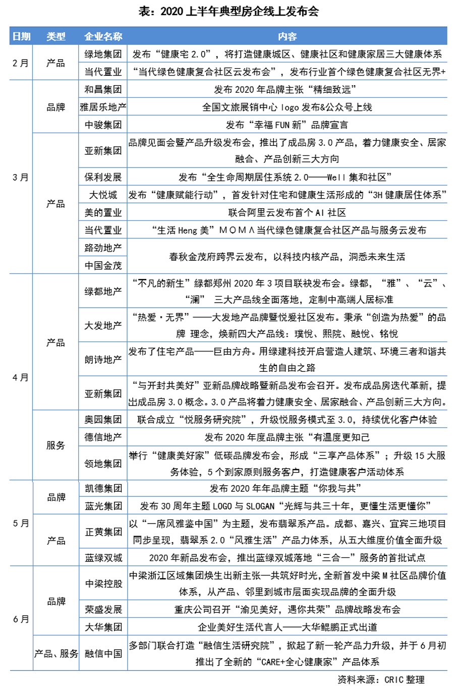 今年上半年,房企在挑战与机遇并存的特殊时期与时俱进,大多以通过直播或云端形式举行发布会,主要聚焦于产品迭代、服务升级等方面,精准定位不同客户需求以变应变,紧扣时代变化和市场脉搏,不断谋求转变和突破,提升服务理念,赋能品牌价值。