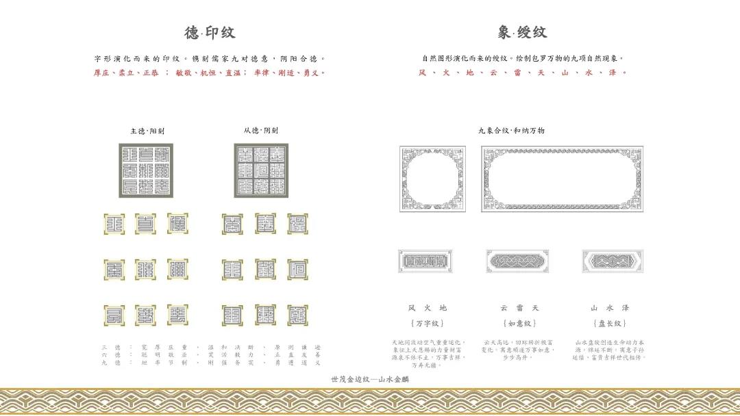 北京球王会体育在线西山龙胤,传承中华古典建筑里表现出,精湛纹刻工艺和繁丽章纹样式,将金印紫绶纹样与九徳九象纹样贯穿建筑肌理,形成建筑立面的传神之笔。屋面山墙、入户门头门庭立柱,窗棂衔隙,隔栅点缀,皆是纹饰所融入意写山水。将中国文化礼序镌刻入生活本身。致敬古代智者的传承,彰显居者的崇德雅韵,于建筑礼序中的传递世代的精神徽章。