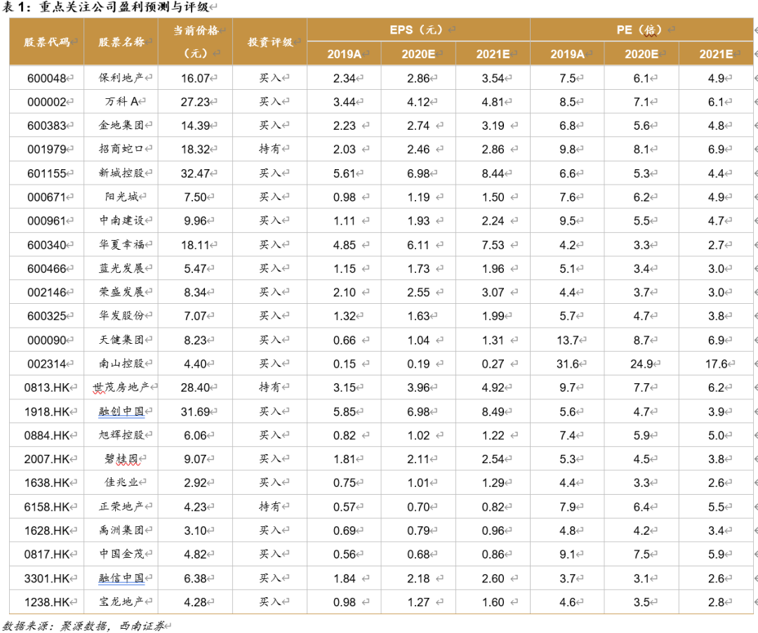 2)存在主题和区域利好的个股:A股推荐天健集团、南山控股、华发股份,关注南国置业、深物业A等,H股推荐龙光地产、佳兆业、禹洲地产等;