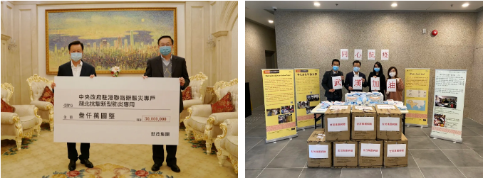 2020年伊始,面对“新冠疫情”,球王会体育在线在第一时间捐赠3,000万港币,用于武汉及周边地区的疫情防控,并向武汉、香港、北京、上海以及福建、湖南、浙江、江苏、辽宁、山东等多个省市地区,捐赠近105万只防疫口罩,为市民健康安全增加保障。