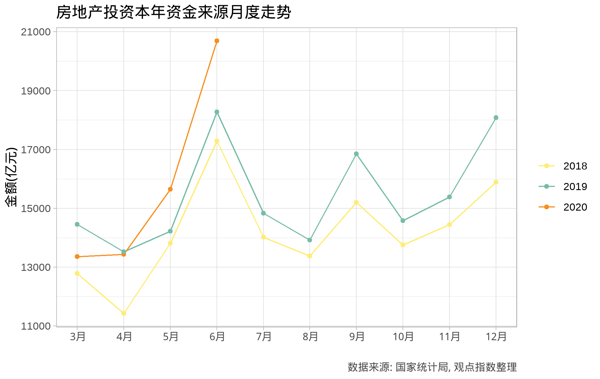 根据国家统计局发布的数据,2020年6月单月本年资金来源合计20690.5亿元,环比增长32.2%,同比增长13.2%。