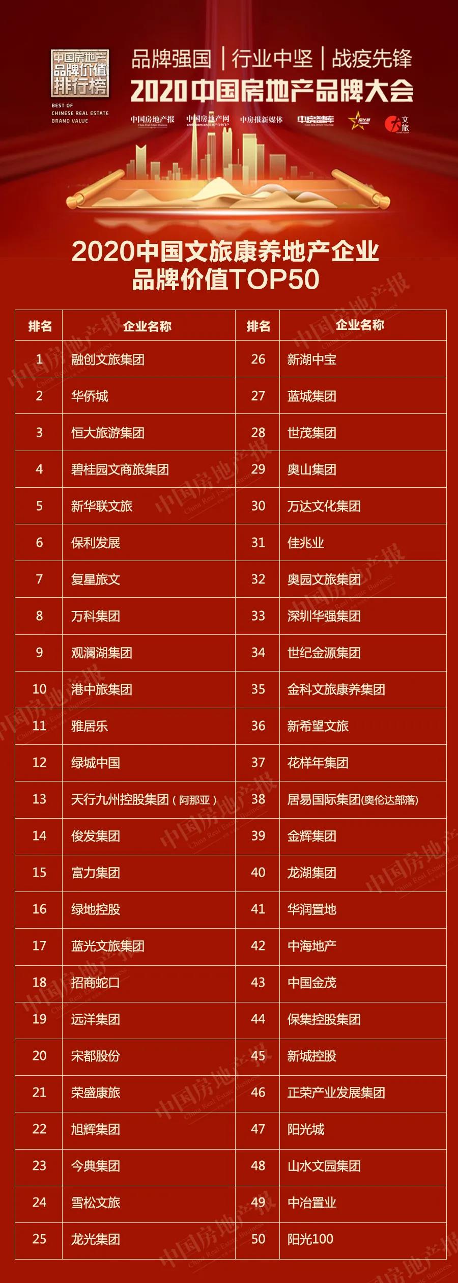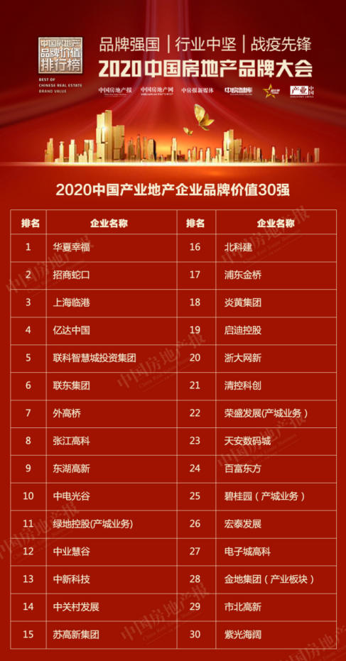 7月31日,在“品牌强国 行业中坚 战疫先锋 2020中国房地产品牌大会”上,中国房地产报、中国房地产网、中房报新媒体、中房智库联合发布了《2020中国房地产品牌价值排行榜》。