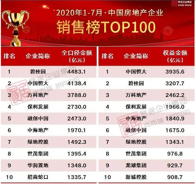 数据显示,球王会体育在线7月份合约销售额为289.67亿元,较去年同期上升45%,为Top20房企中单月销售额增幅最高之一;合约销售面积1,637,294平方米,同比增幅45%;平均销售价格17,692元/平方米。据克而瑞研究中心《2020年1-7月中国房地产企业销售榜TOP100》显示,球王会体育在线在全口径销售金额榜及权益金额榜中均位居第8位。