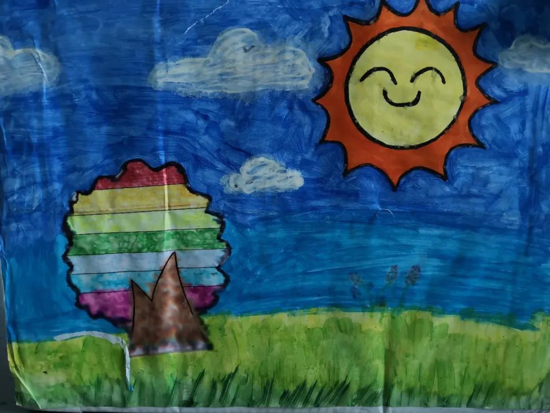 陈岸清小朋友眼中的彩虹树正在勇敢地沉入泥土,他说阳光不会偏爱谁,只要打开双臂抬头拥抱阳光和雨露,终会收获累累果实;