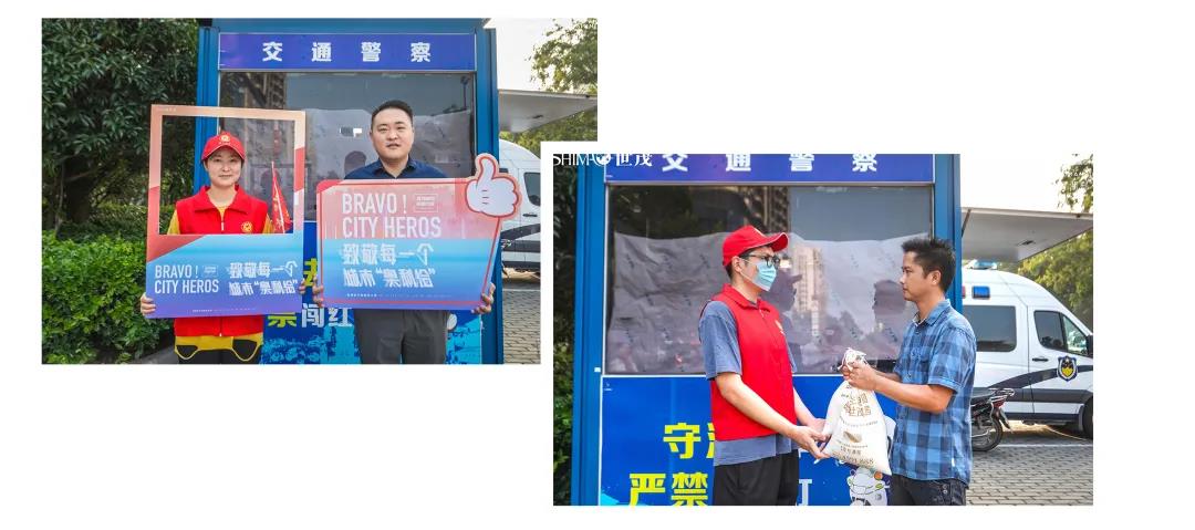杭州的关怀小组在街头,为正在大汗淋漓工作中的环卫工人们送上冰淇淋、喉糖、清凉油等清凉小礼包;在舟山和温州,关怀小组不光为坚守在交通第一线的交警、环卫工人以及建筑工人们送上了定制饮品、小风扇等慰问品,还在售楼处设立一线高温工作者休息区,为城市守护者们提供特调消暑饮品及冰镇水果;嘉兴团队为当地城管单位贴心准备了冰袖等降温神器……汗水打湿了的衣衫,但他们的笑容依旧灿烂。