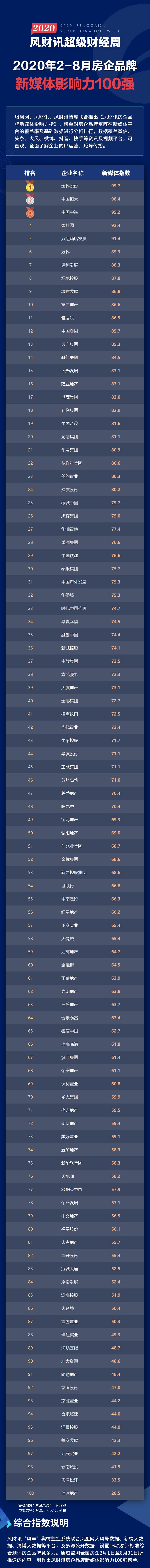 9月1日,风财讯、风财讯智库联合凤凰网,在2020风财讯超级财经周上发布2020风财讯房地产企业品牌价值报告。此次报告,风财讯“风声”舆情监控系统联合凤凰网大风号数据、新榜大数据、清博大数据等平台,及多源公开数据,设置16项参评标准综合测评房企品牌竞争力。