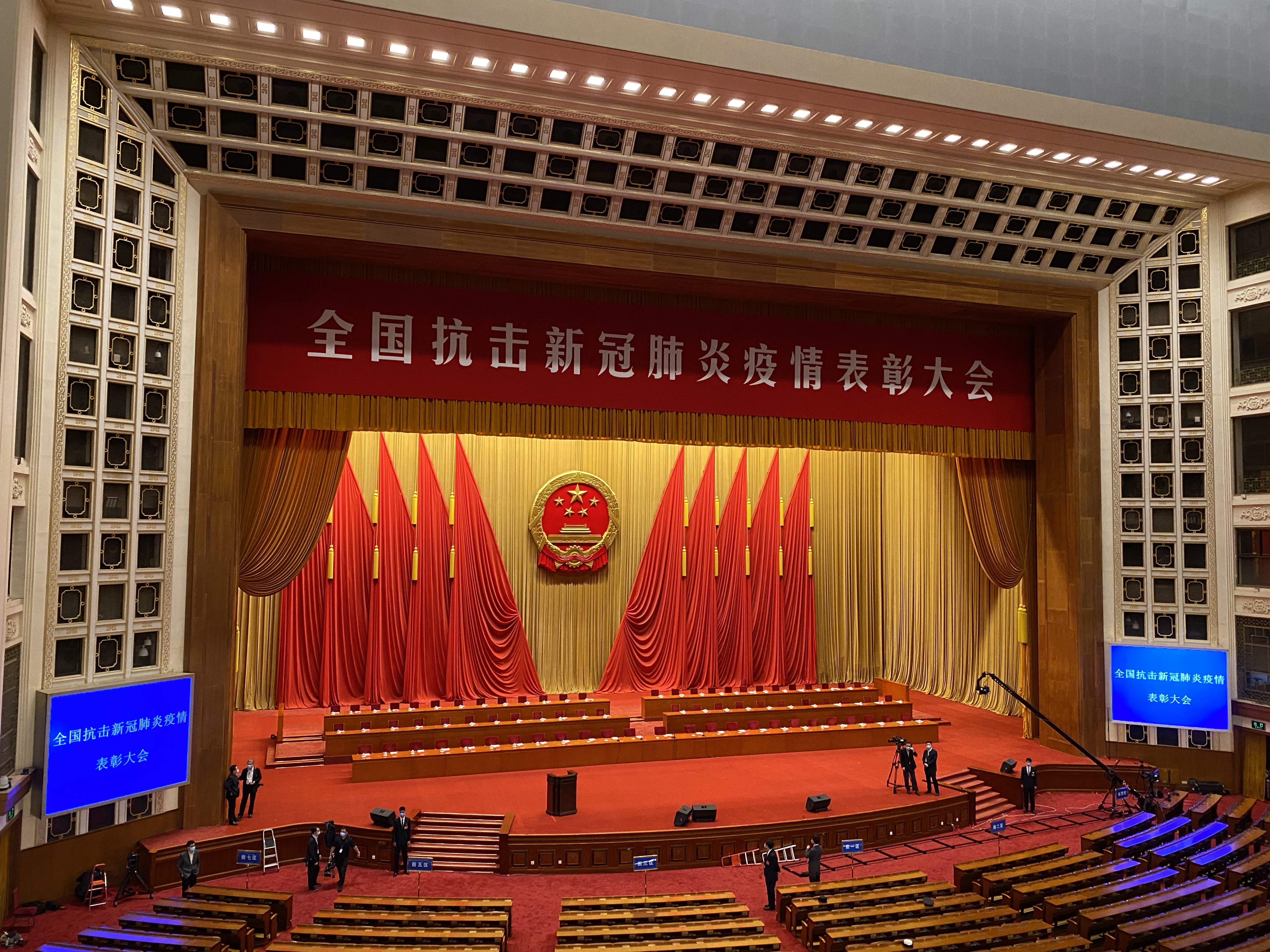 全國抗擊新冠肺炎疫情表彰大會將於上午10時在北京人民大會堂隆重舉行。(大公文匯全媒體記者攝)