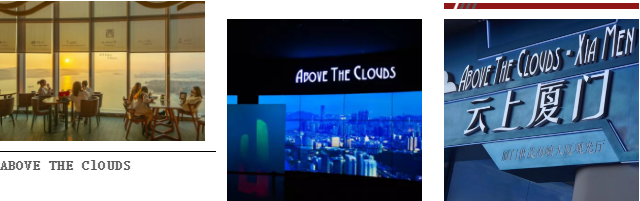 置身300米高空,360度旋转厦门迷人风情,透过落地窗俯瞰整个城市的婀娜多姿,身临其境的畅游在云端探索:海上花园鼓浪屿尽收眼底,厦门大学、南普陀寺、艺术西区、一衣带水的金门岛和台湾海峡都尽收眼底。