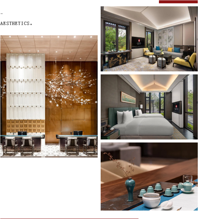 酒店以宋代理学家朱熹笔下的《九曲棹歌》为设计灵感,结合武夷山水自然景观以轻舟入画设计酒店进入动线,缔造全国首例宋代美学“舟行谧境”酒店体验。在东方美学所营造的返璞归真的意境中,以沉浸的方式,让宾客重历宋人赋闲山居的日常。